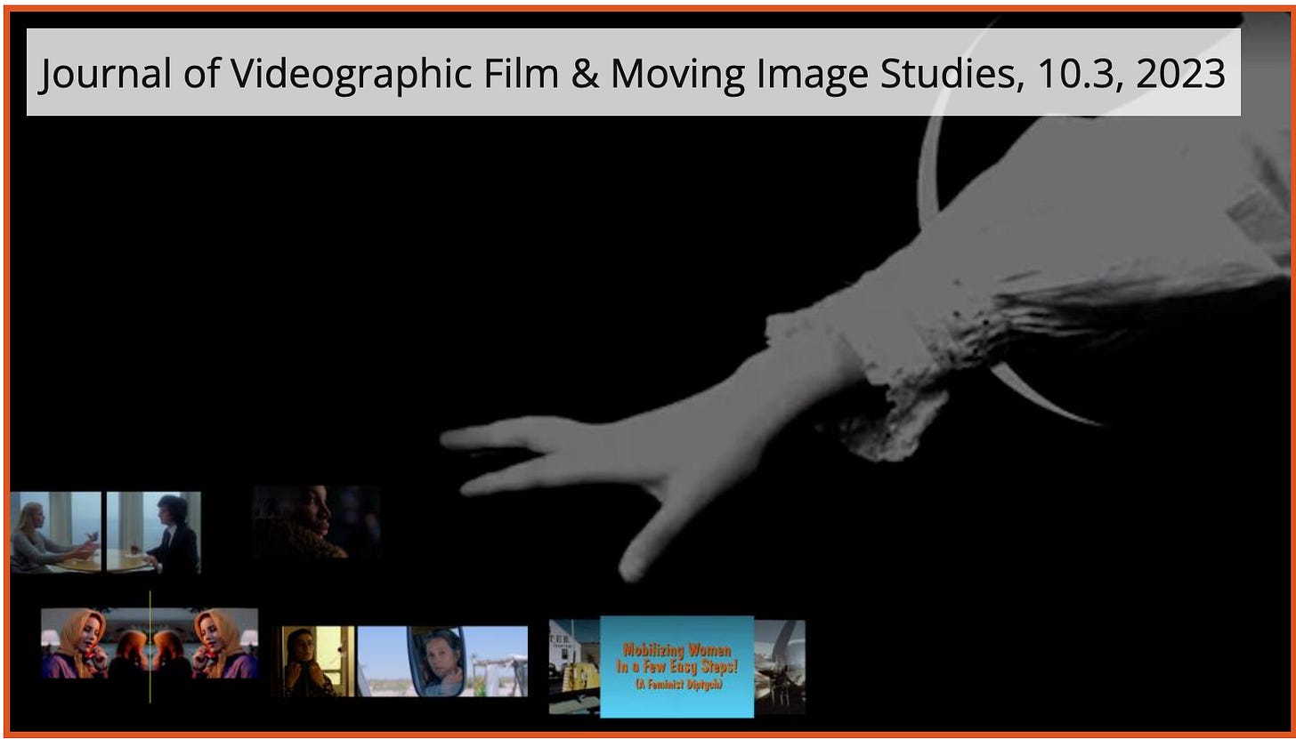The Video Essay Podcast returns with guest Catherine Fowler, a film scholar based at the University of Otago in New Zealand, and curator of the latest issue of the journal [in]Transition. The issue features feminist videographic diptychs by six scholars: Nicole Morse, Maryam Tafakory, Melissa Dollman, Paola Voci, Maud Ceuterick, and Catherine herself. Listen here.